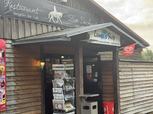 Am Platz befindet sich ebenso ein kleiner Laden,wo man auch morgens ab 7.30 Uhr seine frischen Brötchen bekommt.